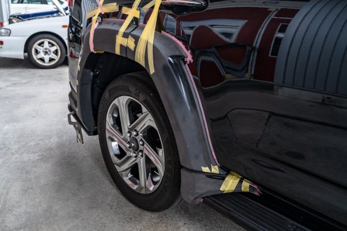 まず仮合わせです。 一度パーツを車に当ててみて、フィッティングを確認。