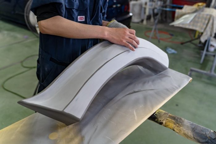 広報の原です。GRスープラのリップスポイラーの一部を加工し、デザインを変更するお仕事をさせていただきました。